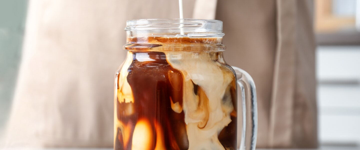 3 Voeg de melk (of melk alternatief) toe aan het glas.
